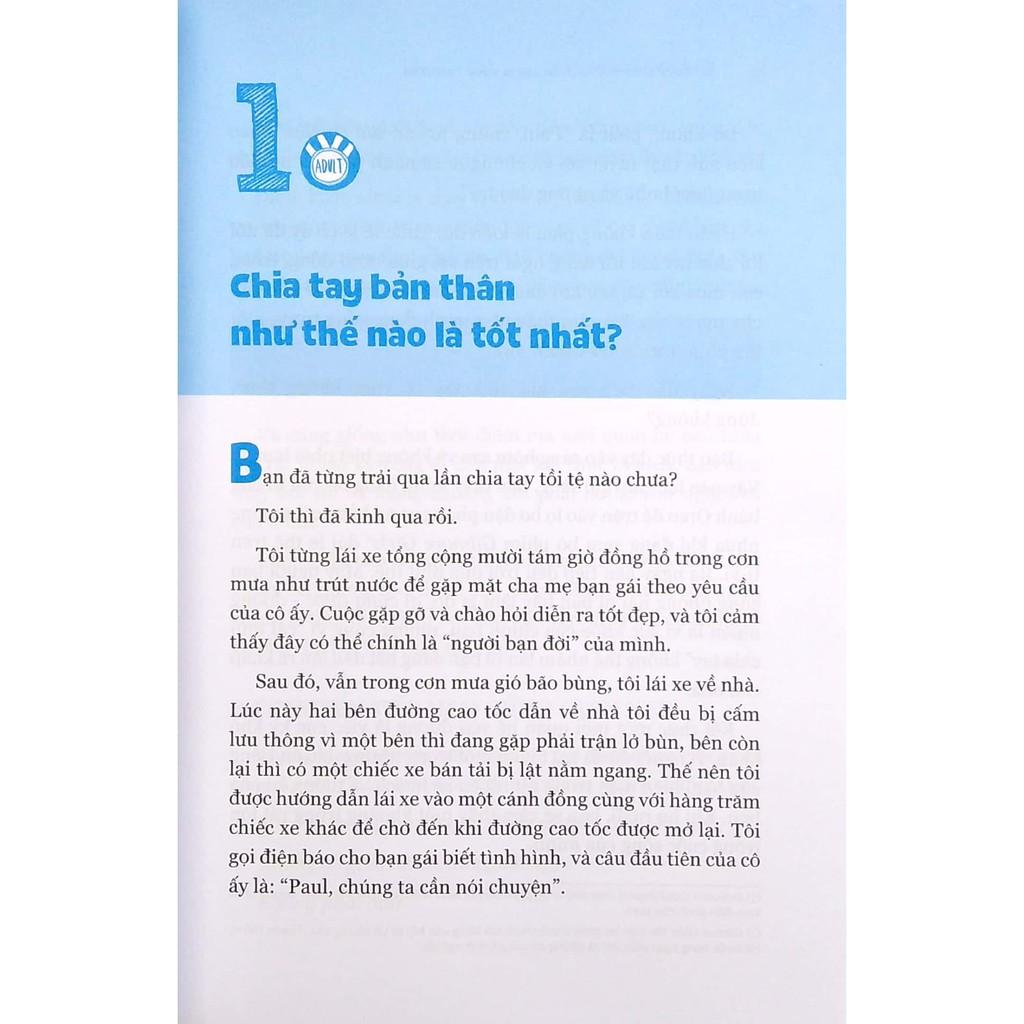 Quyển sách được mở đầu bằng hồi ức về câu chuyện “bất tỉnh giữa trời” của tác giả khi ở tuổi hai mươi. Trải nghiệm đó đã giúp anh nhận ra một sự thật đơn giản nhưng khiến anh phải mất khá nhiều thời gian để hiểu và thấm thía, đó là “Khi chúng ta ở tuổi đôi mươi, điều quan trọng không phải là cố lèo lái con tàu đời mình theo một kế hoạch nào đó, mà là chúng ta phải thích ứng, thay đổi và phát triển khi mọi thứ không diễn ra đúng như dự tính”. Trong các phần tiếp theo, Paul Angone đặt ra lần lượt 101 câu hỏi. Với mỗi câu hỏi, anh lý giải ý nghĩa và tầm quan trọng của việc đặt câu hỏi đó trong cuộc sống, và để người đọc tự tìm ra câu trả lời cho riêng mình. Các câu hỏi trong sách đều có sự liền mạch và liên quan đến các khái niệm và hình ảnh đặc trưng mà tác giả đã giới thiệu ở phần mở đầu: Trưởng thành, Sự nghiệp, Quan hệ, và Món-nước-xốt-độc-đáo. Với mỗi câu hỏi được đặt ra, tác giả đưa ra những điều chiêm nghiệm dí dỏm, độc đáo nhưng không kém phần sâu sắc được đúc kết từ trải nghiệm cuộc sống của chính mình.