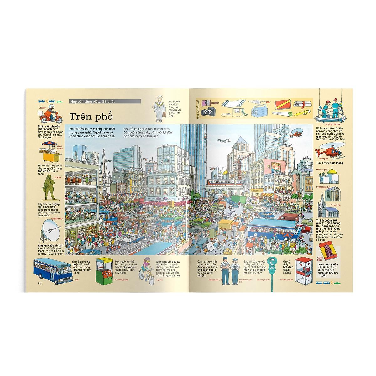 Mua tại TiktokThử tài tìm kiếm – Thành phố Chào mừng em đến với cuốn sách về thành phố! Thị trưởng Maurice sẽ là người hướng dẫn cho em trong chuyến thăm thú trọn một ngày này. Mỗi điểm dừng chân trong Thử tài tìm kiếm – Thành phố đều chứa đựng nhiều điều thú vị cho em tìm kiếm và vô số thông tin mới lạ về các thành phố cùng những người sống và làm việc ở đó cho em tha hồ tìm hiểu. Còn chờ gì nữa, bắt đầu ngay thôi!