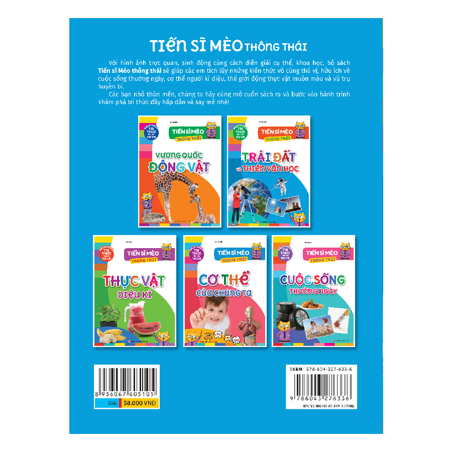 Với hình ảnh trực quan, sinh động cùng cách diễn giải cụ thể, khoa học, bộ sách Tiến sĩ Mèo thông thái sẽ giúp các em tích lũy những kiến thức vô cùng thú vị, hữu ích về cuộc sống thường ngày, cơ thể người kì diệu, thế giới động thực vật muôn màu và vũ trụ huyền bí.