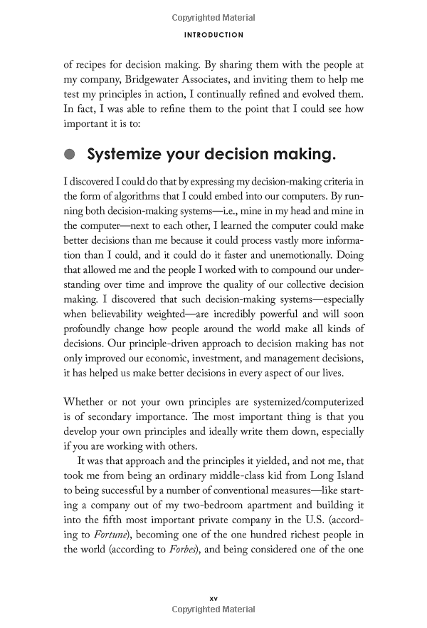 Ray Dalio, one of the world's most successful investors and entrepreneurs, shares the unconventional principles that he's developed, refined, and used over the past forty years to create unique results in both life and business-and which any person or organization can adopt to help achieve their goals.