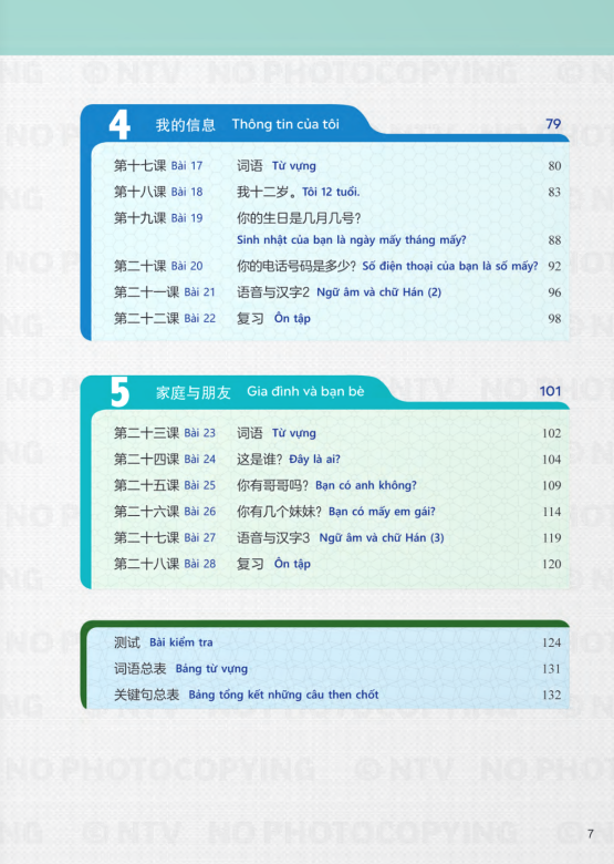 Tiếng Trung Dành Cho Học Sinh Trung Học - Tập 1 Bộ sáchTiếng Trung Dành Cho Học Sinh Trung Họccó tám tập. Mỗi tập được chia thành năm chương, đề cập đến các chủ đề