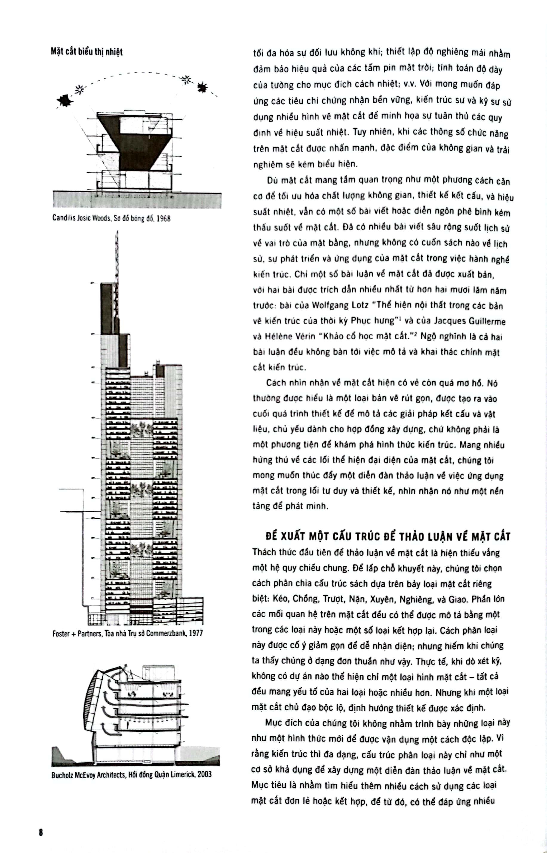 Quyển sách này được hệ thống theo một cách kích thích sự khám phá và tạo ra những thảo luận mở về mặt cắt. Sáu mươi ba mặt cắt phối cảnh đã được phân theo bảy nhóm riêng biệt, cung cấp cho sinh viên, kiến trúc sư, và các độc giả khác một góc nhìn tổng quan và toàn diện để có những nghiên cứu sâu hơn về mặt cắt.