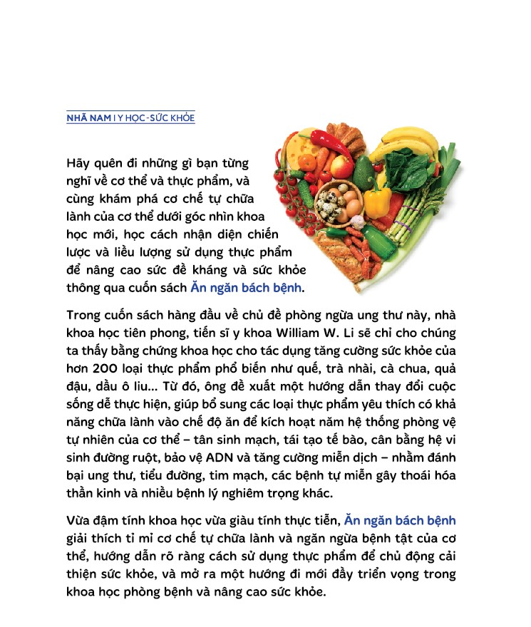ĂN NGĂN BÁCH BỆNH: CƠ CHẾ TỰ CHỮA LÀNH CỦA CƠ THỂ (Tiến sĩ Y học William W.Li) Nhà phát hành: Nhã Nam Tác giả: William W.Li Người Dịch: Quỳnh Chi NXB Dân Trí