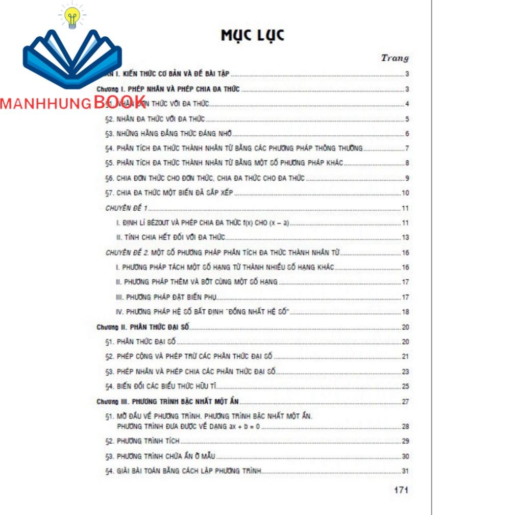 Công ty Học Liệu Sư Phạm giới thiệu: Giới thiệu sách: Nội dung gồm có: Tập 1 Chương I. Số hữu tỉ Chương II. Số thực Chương III. Góc và các đường thẳng song song