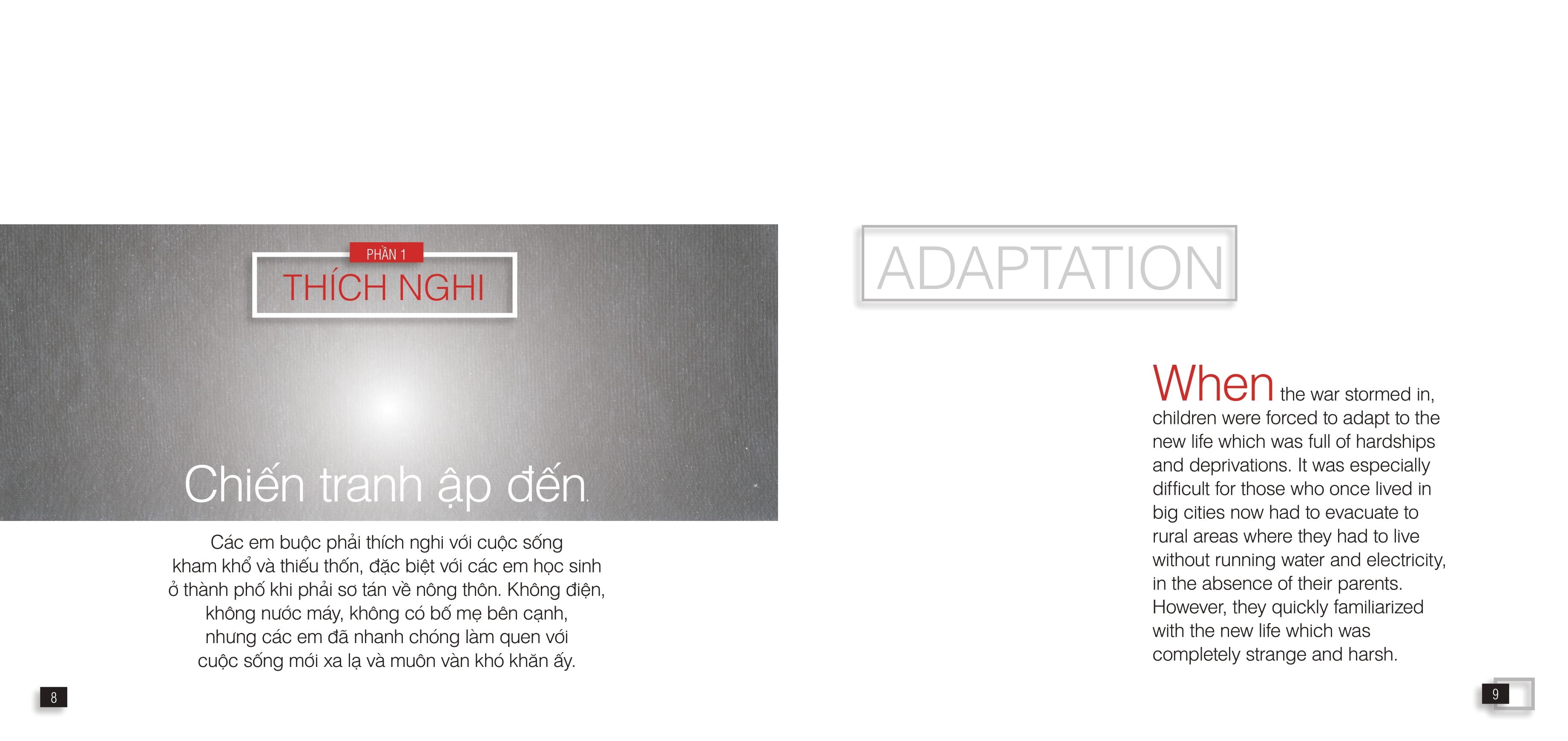 It is a great honor as well as a weighty responsibility for Kim Dong Publishing House to receive such valuable documents from NDN. Our Publisher has acknowledged the challenging tasks of strongly promoting, treasuring the great merit and intention from our partner, as well as bringing those images to present life, to children who were born in peace time. Children of our country, no matter when they were born, are all descendants of the same ancestors whose history was victorious, therefore they should thoroughly comprehend the worth of peace that they were given, and truly cherish and appreciate the life that they are living. This urge has led to an idea.