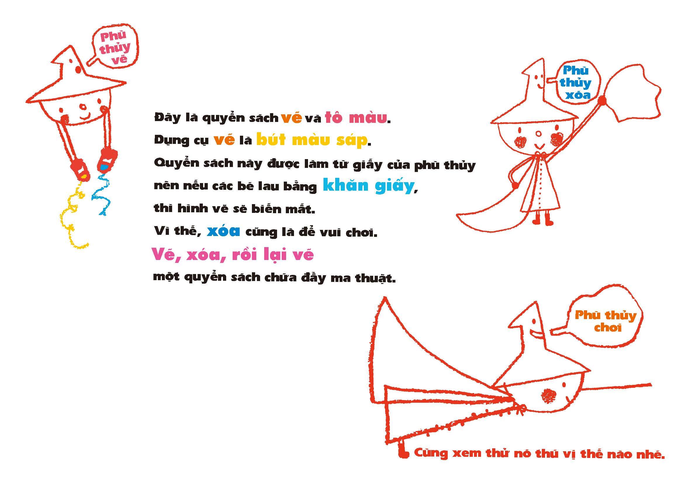 Mua tại TiktokTủ Sách Vui Để Học - Phù Thủy Nhỏ - Vẽ, Xóa, Rồi Lại Vẽ Vẽ, xóa, rồi lại vẽ: Phiên bản này được thiết kế để bé có thể vẽ đi vẽ lại nhiều lần! Nếu bạn thích thì cho dù có lộ ra ngoài hay chỉ thoa một chút cũng không sao. Miễn là bé thích thì dù có tô lem ra một chút, vẽ nguệch ngoạc một chút cũng không thành vấn đề! Cuốn sách tô màu này sẽ tạo sân chơi cho bé thoải mái vui chơi và phát triển cảm giác về màu sắc, trí tưởng tượng và khả năng sáng tạo của m.ình. Trọn bộ tuyển tập sách tô màu và cắt dán vui nhộn đến từ tác giả minh họa người Nhật nổi tiếng – LaZOO. Tuyển tập này đã đạt giải thưởng lớn trong Triển lãm sách dành cho trẻ em ở Bologna.