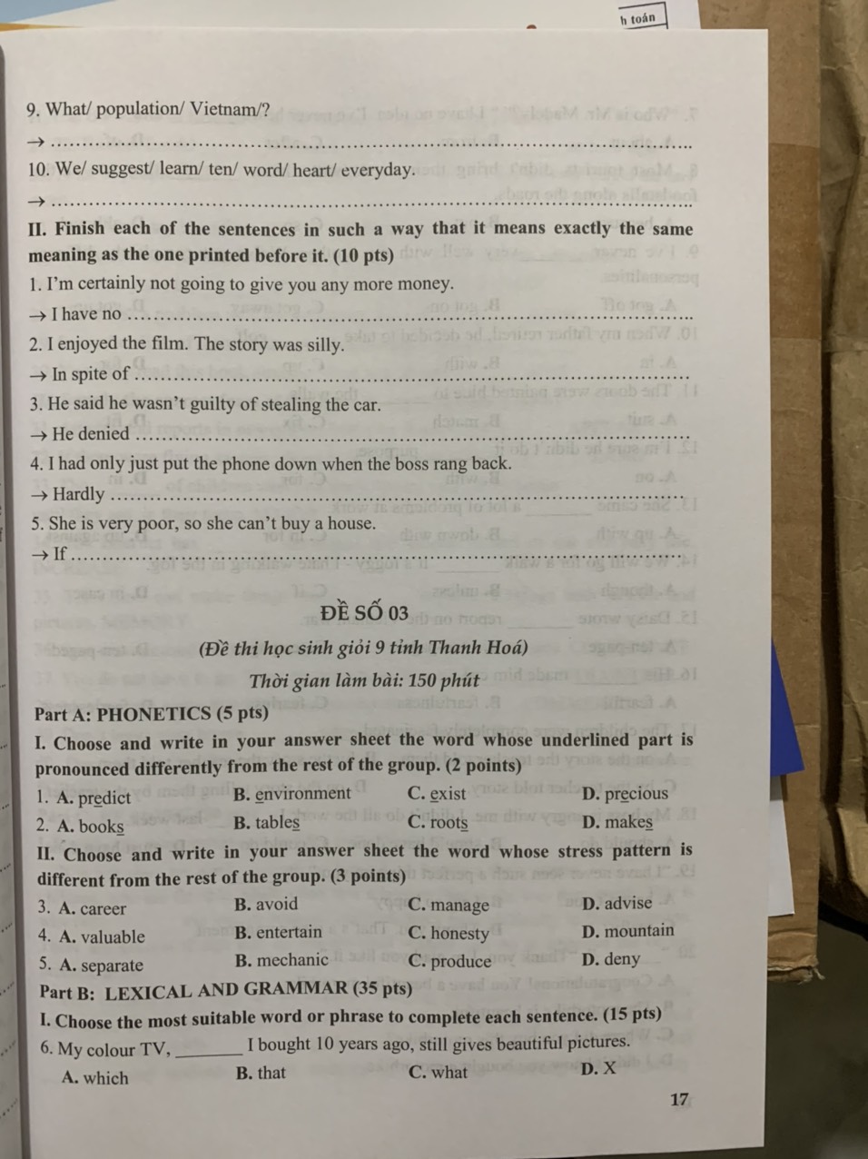 Đề Anh 2 |Giải đề thi tuyển sinh vào 10 môn Tiếng Anh