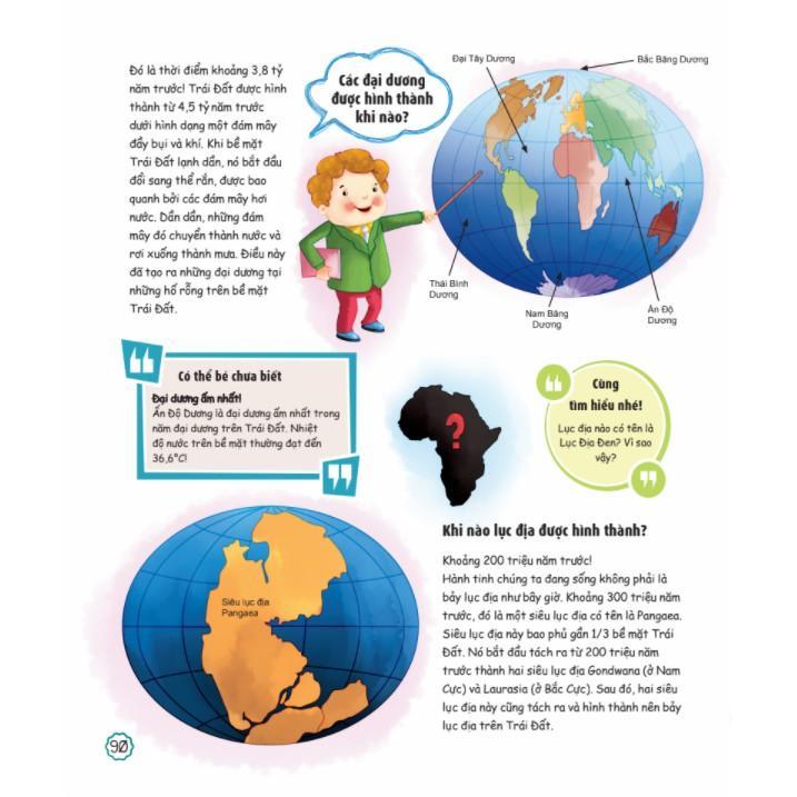 - 6 chương của cuốn sách sẽ mở ra những điều thú vị và trả lười những thắc mắc của con về: Cơ thể người, hệ mặt trời, công nghệ, khoa học, động vật, tự nhiên.
