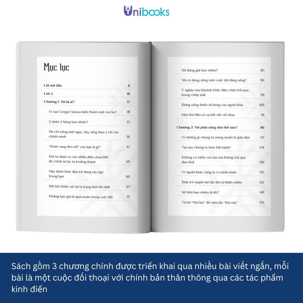 Sách gồm 3 chương chính được triển khai qua nhiều bài viết ngắn, mỗi bài là một cuộc đối thoại với chính bản thân thông qua các tác phẩm kinh điển: