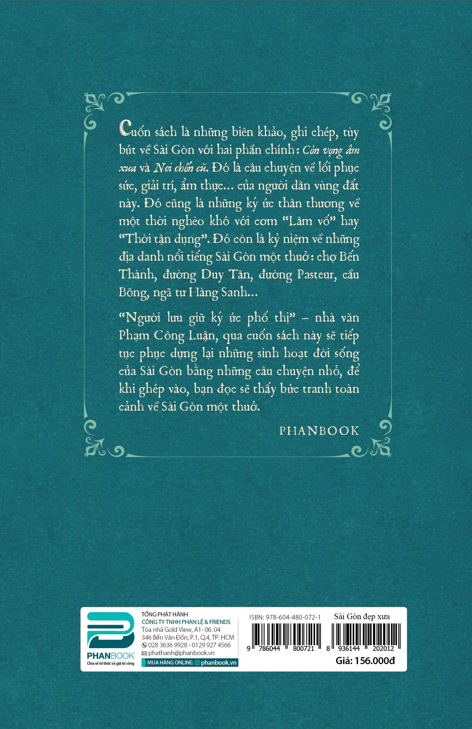 “Người lưu giữ ký ức phố thị” – nhà văn Phạm Công Luận, qua cuốn sách này sẽ tiếp tục phục dựng lại những sinh hoạt đời sống của Sài Gòn bằng những câu chuyện nhỏ, để khi ghép vào, bạn đọc sẽ thấy bức tranh toàn cảnh về Sài Gòn một thuở.