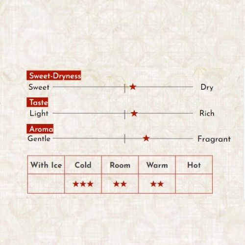 Loại r'ượu sake Junmai này được ủ ở nhiệt độ thấp trong một thời gian dài theo cách ủ r'ượu ginjo, sử dụng tất cả gạo Koshihikari được sản xuất tại địa phương từ Kumihama. Nó là một loại r'ượu sake có hương vị rất mịn và nhẹ nhàng.