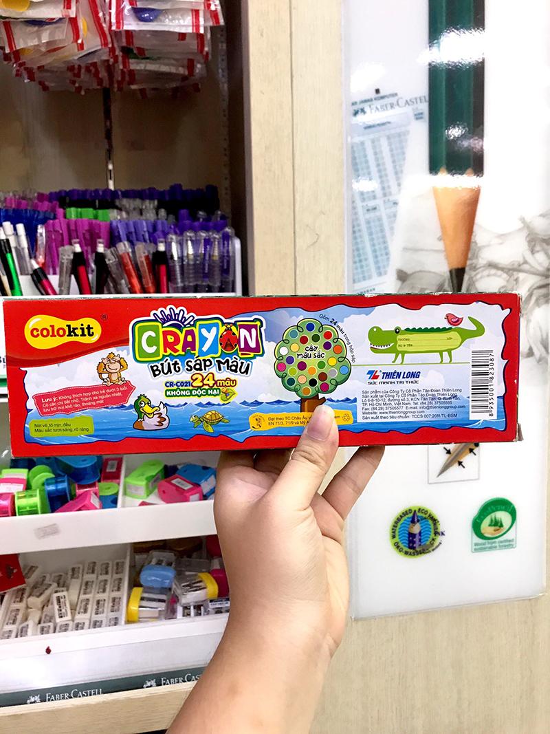 - Sáp Màu Thiên Long CR-C021 (24 Màu) có thân sáp hình trụ tròn, nhỏ vừa tay cầm của các bé. - Màu sắc tươi sáng đúng chuẩn màu mỹ thuật. Tô êm, ít bụi,