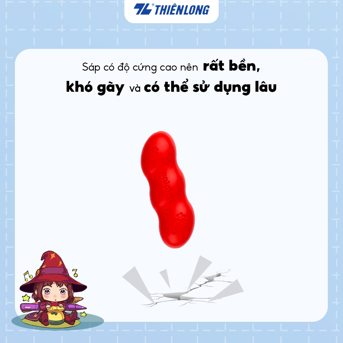 Thương hiệu: Colokit - Thiên Long Đường kính sáp: 8.25 mm Chiều dài sáp: 73 mm Tiêu chuẩn: TCCS 21:2018/TL-BSD; tiêu chuẩn châu Âu EN 71/3 Xuất xứ: Việt Nam