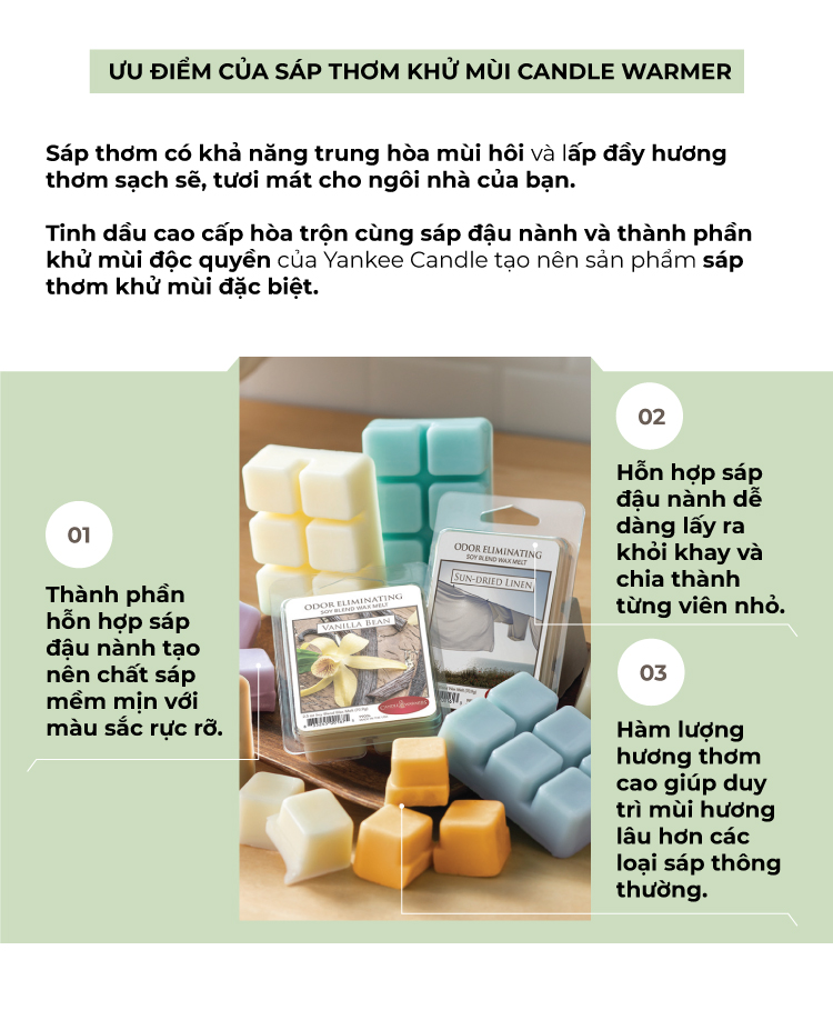 Hương thơm dịu nhẹ, thoáng mát, dễ chịuSáp thơm Aroma tạo hương thơm tự nhiên, nhẹ nhàng, mang đến cảm giác thoải mái, giúp nhanh chóng xóa tan mệt mỏi, đem lại cảm giác dễ chịu