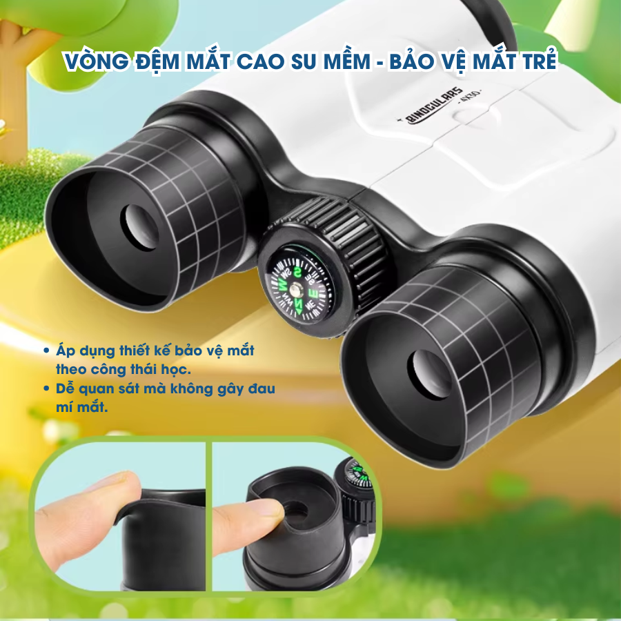 Ống nhòm nhỏ gọn dành cho trẻ em, phóng đại 4X, hình ảnh rõ nét, dễ dàng điều chỉnh tiêu cự 360°. Trang bị thêm la bàn định hướng, lý tưởng cho các chuyến dã