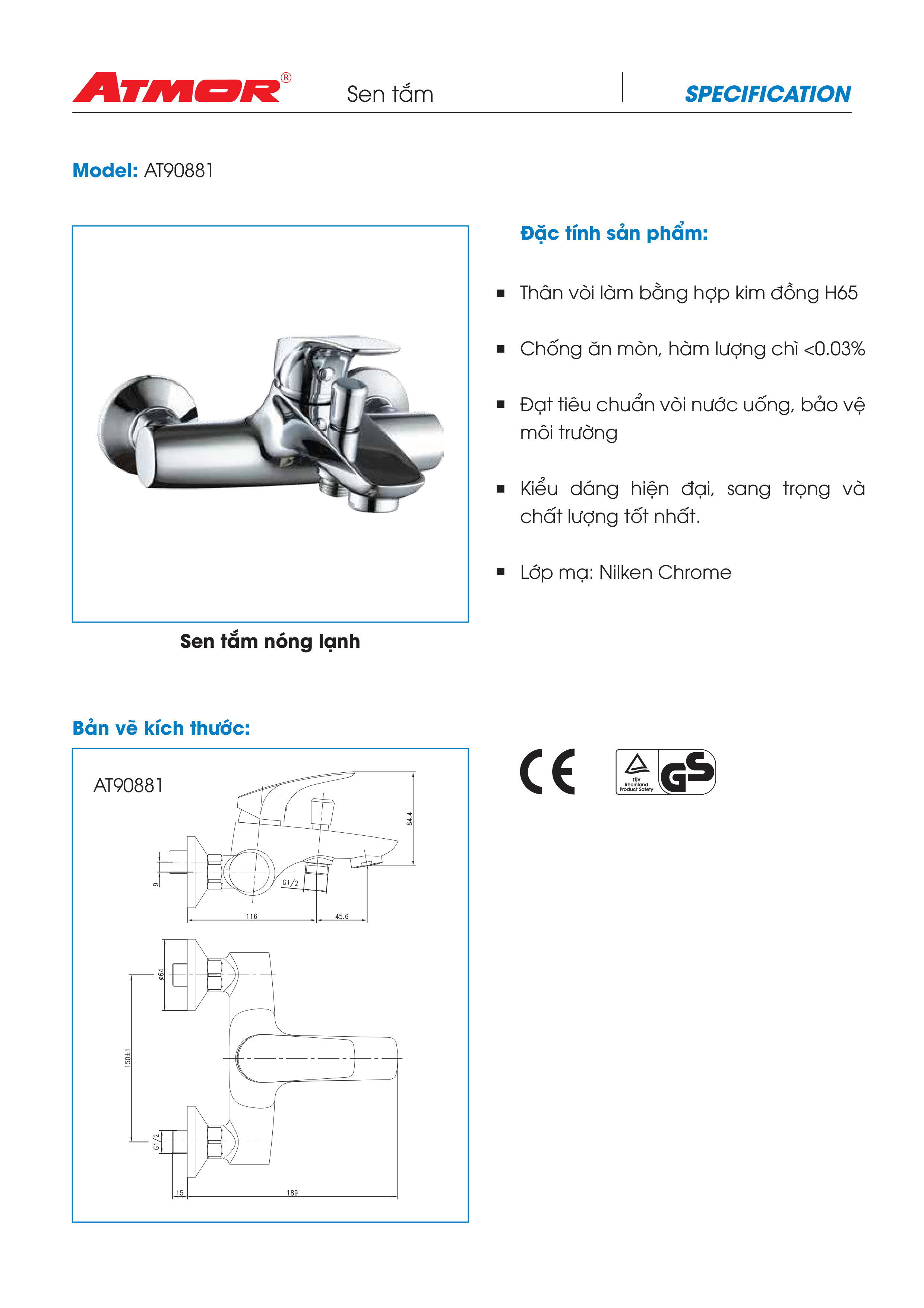 Mua tại TiktokSen tắm nóng lạnh ATMOR AT90881 Thông tin sản phẩm Thông tin về sen tắm nóng lạnh Atmor: