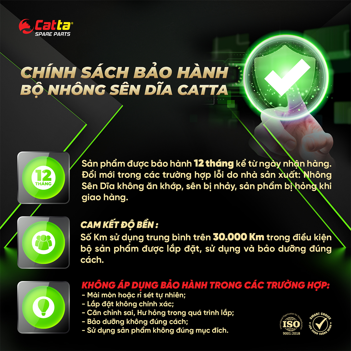 VỀ THƯƠNG HIỆU CATTA SPARE PARTS: Thương hiệu CATTA SPARE PARTS do Công Ty TNHH TM XNK Song Nam sáng lập. Trước khi lấn sân sang ngành hàng nhông sên dĩa, Chúng tôi là nhà phân phối lâu năm trên thị trường dầu nhớt với đa dạng thương hiệu hàng nhập khẩu và nội địa. Tất cả sản phẩm do Song Nam chịu trách nhiệm phân phối đều được lựa chọn kỹ lưỡng về chất lượng và có mức độ phù hợp cao với người tiêu dùng. Chúng tôi hiểu rõ rằng muốn phát triển bền vững thì hàng hóa phải thực sự có chất lượng tương xứng với mức giá mà người tiêu dùng chi trả, đi kèm với chất lượng dịch vụ phân phối nhanh chóng, tận tâm.