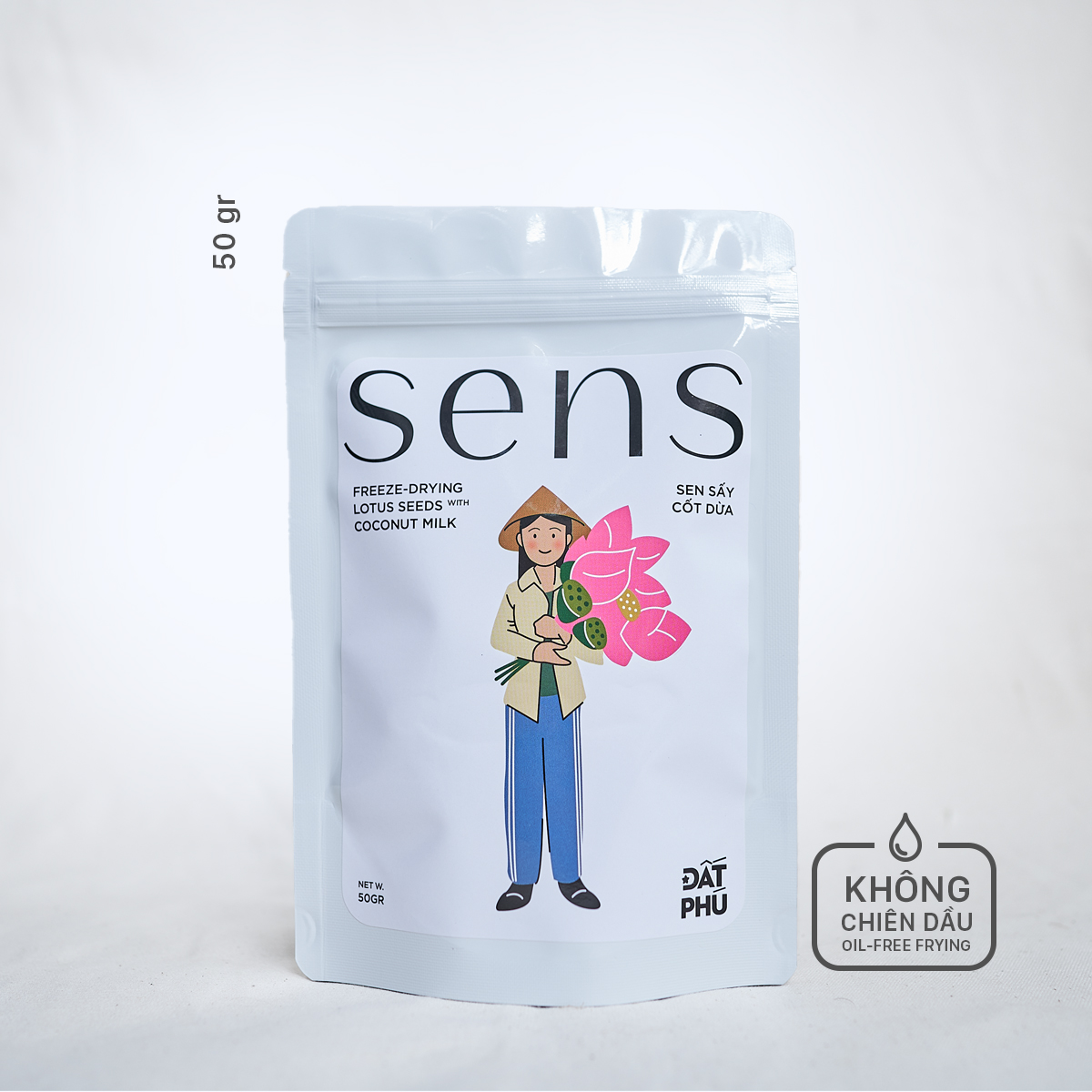 SENS - Sen Sấy thăng hoa được làm từ những hạt Sen Gò tươi, hòa quyện với Nước Cốt Dừa theo một tỷ lệ hoàn hảo. Được sấy bằng công nghệ hiện đại Freeze - Drying, vì vậy SENS giữ lại gần như nguyên vẹn hàm lượng dưỡng chất, mùi vị, màu sắc và hương thơm dịu nhẹ vốn có của hạt Sen Gò. Nếm một hạt, chúng tôi tin rằng, SENS xứng với tên gọi Hạt Ngọc Trời.