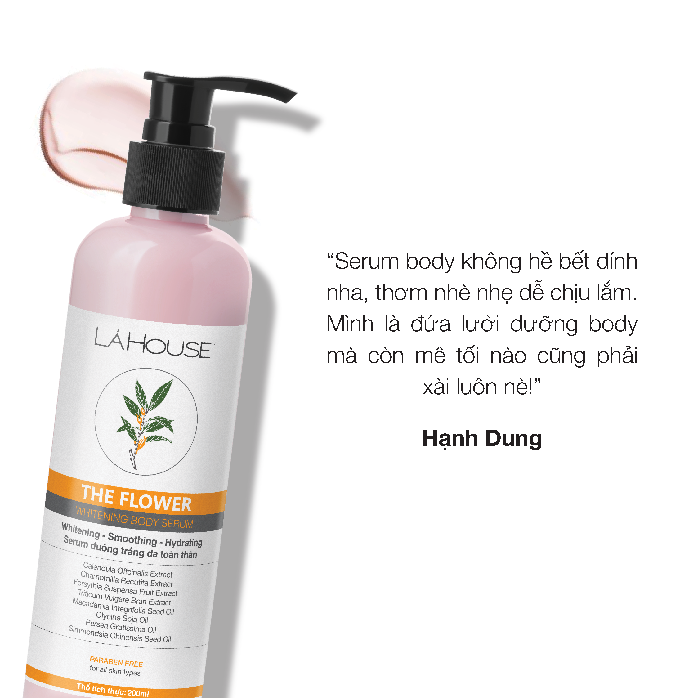 The Flower Whitening Body Serum với các chiết xuất tự nhiên được giới mỹ phẩm đánh giá cao trong việc dưỡng trắng da, cung cấp nguồn dưỡng chất giúp dưỡng da trông trắng khỏe, căng