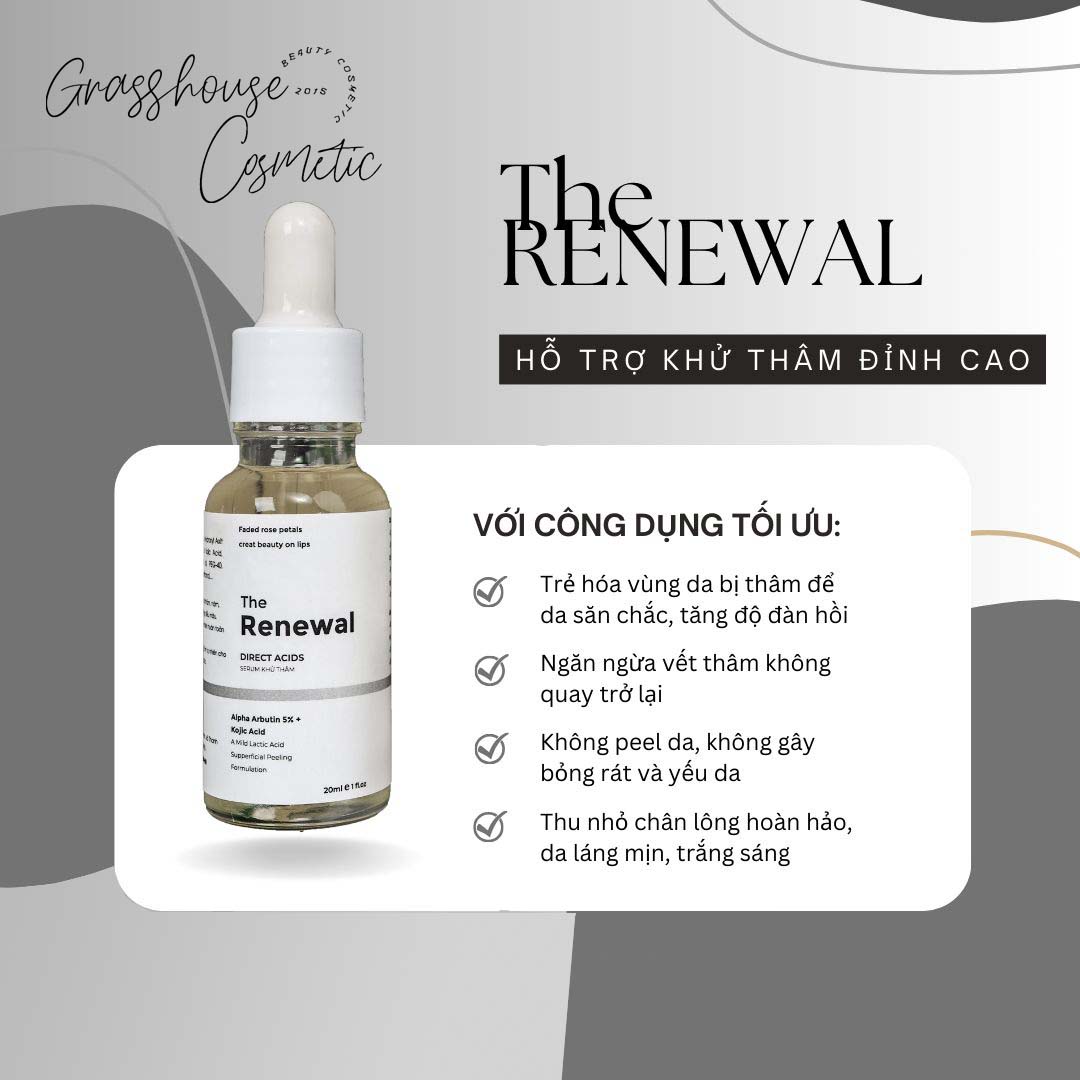 Đừng Để Những Vùng Da Thâm Sạm Khiến Bạn Mất Tự Tin~~~ ================ Khử thâm The Renewal cho da mặt và da body Xuất xứ: Việt Nam Dung tích: 20ml Cải thiện vùng da thâm