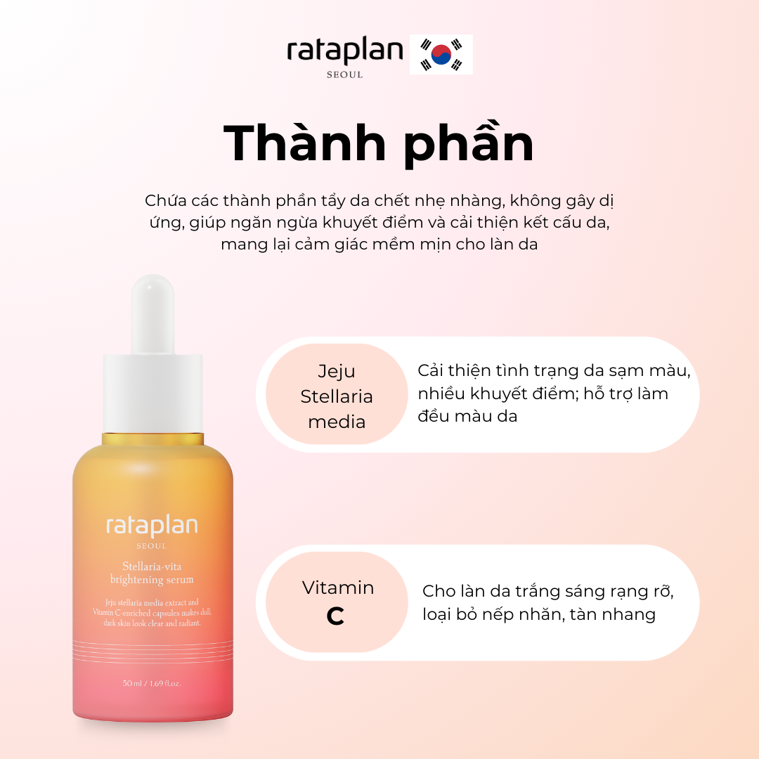 Serum [Rataplan] Stellaria-Vita 50ml là giải pháp lý tưởng cho làn da tối màu và xỉn màu. Với công thức đặc biệt chứa chiết xuất Stellaria-Vita từ thiên nhiên, sản phẩm giúp làm sáng da,