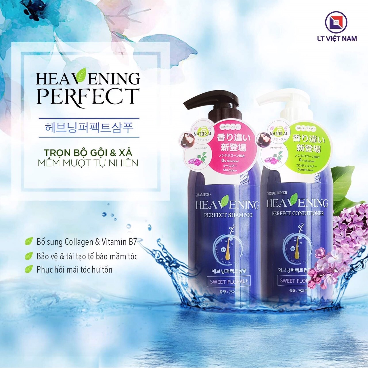 SET 01 DẦU GỘI & 01 DẦU XẢ CHĂM SÓC TÓC CAO CẤP, SUÔN MƯỢT HEAVENING PERFECT - NHẬP KHẨU HÀN QUỐC