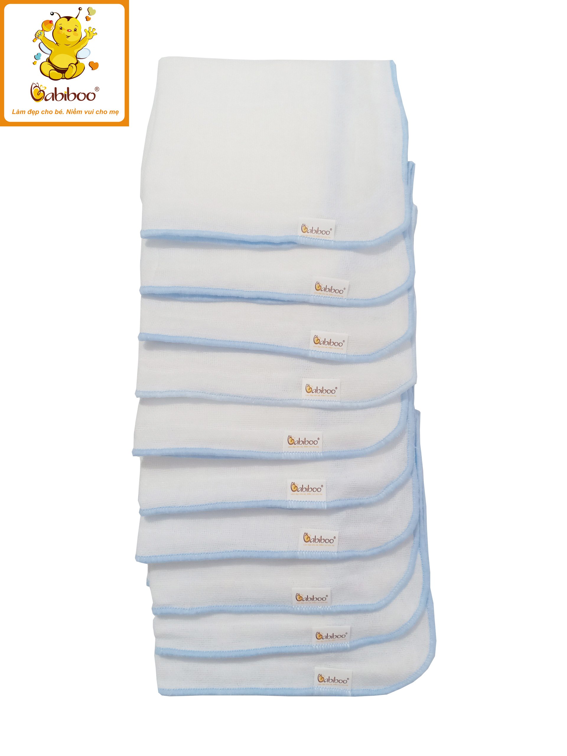 Khăn gạc G10 nhỏ cuốn biên BABIBOO - BK02 Với sản phẩm này, mẹ có thể dùng để thấm sữa, rửa mặt, lau miệng, tắm rửa, vệ sinh cho trẻ sơ sinh hay quàng cổ