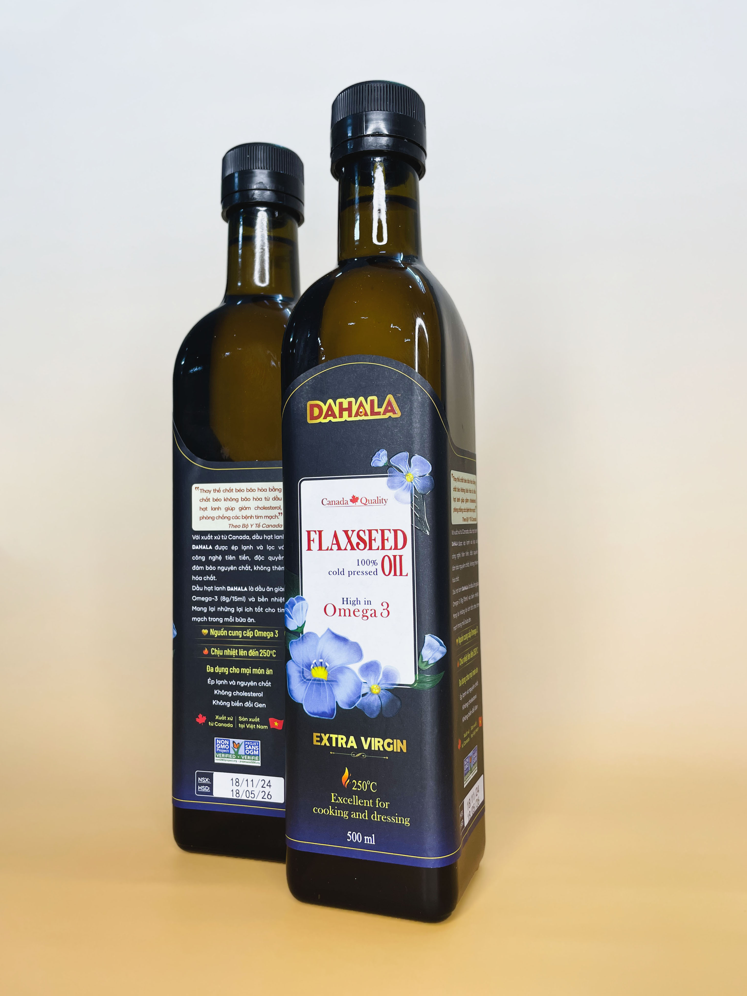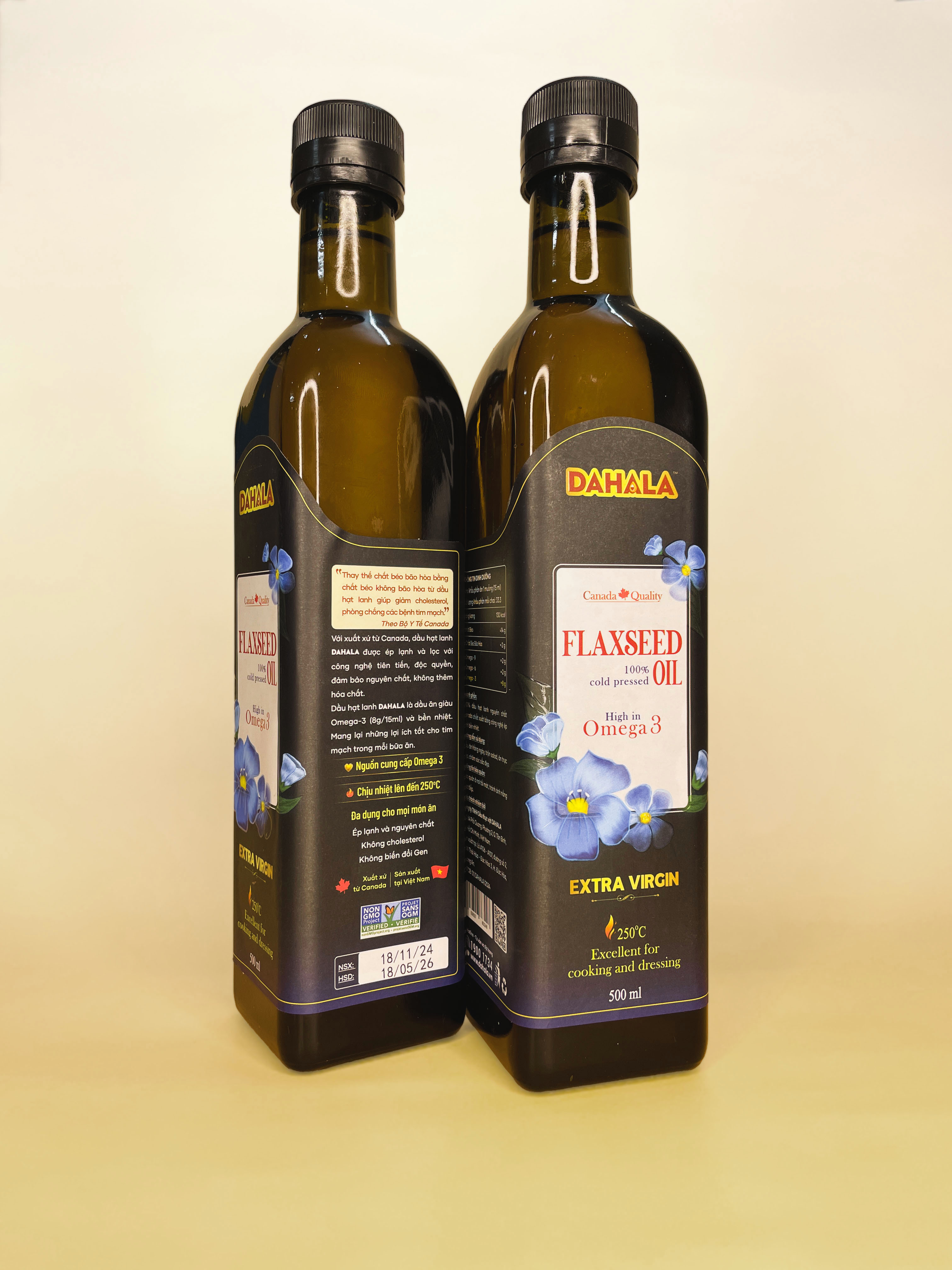 ✨(SET 2 CHAI) SET HỘP QUÀ TẾT DẦU HẠT LANH ÉP LẠNH BỀN NHIỆT DAHALA 25O MI, GIÀU OMEGA 3,6,9
