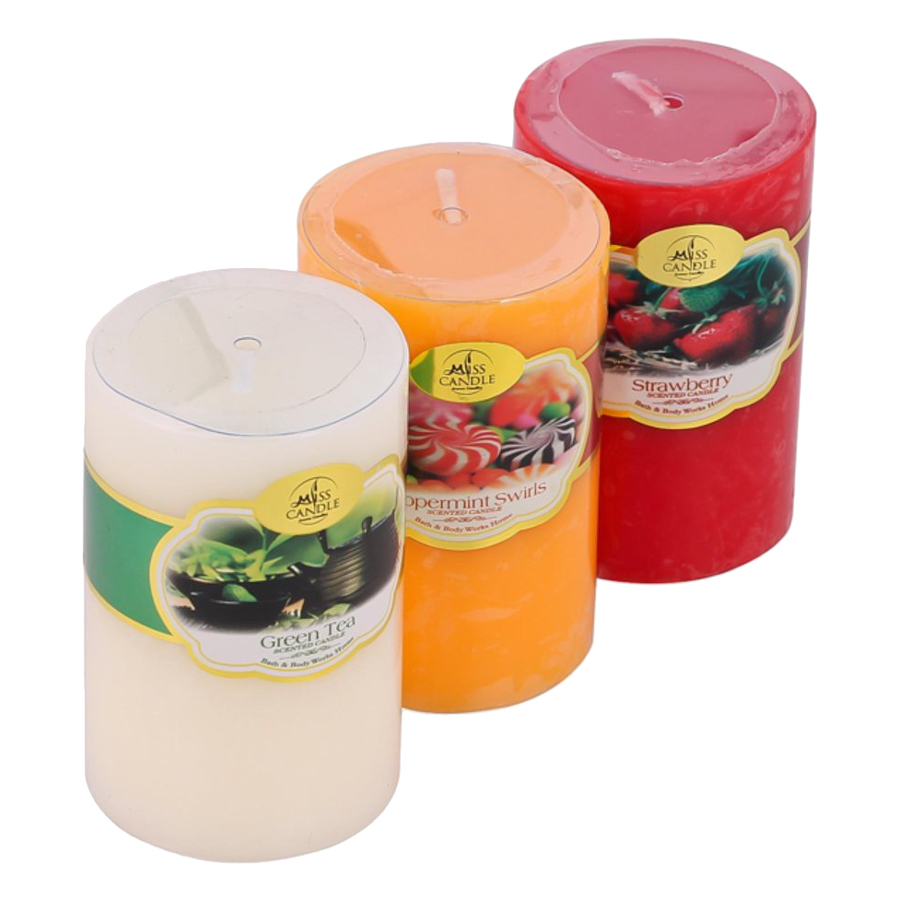 - Set 3 Nến Thơm Trụ Tròn D5H8 Miss Candle FtraMart NQMD5H8 (5 x 8 cm) - (Cam - Đỏ - Vàng Nhạt) bằng sáp parafin được sản xuất trên dây chuyền công nghệ hiện đại,
