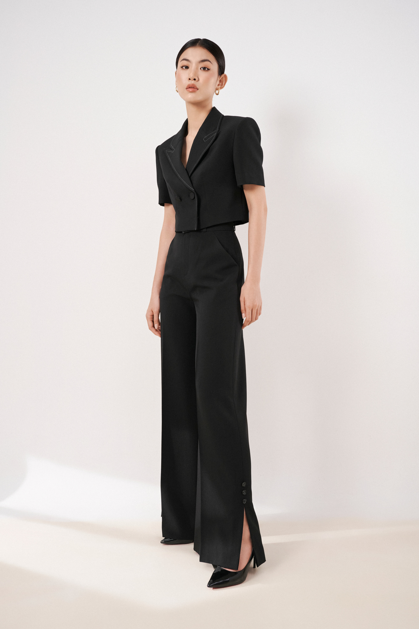 Mua tại Tiktok- Thông tin sản phẩm | Avery Set lấy cảm hứng từ những cô nàng hiện đại, trẻ trung và năng động với tone màu đen huyền bí làm màu chủ đạo mang đến vẻ đẹp sang trọng, quyến rũ. Áo croptop blazer với thiết kế tay ngắn, cổ peak gợi nên nét đẹp thanh lịch vượt thời gian. Quần suông ống loe là một mảnh ghép hoàn hảo cho áo crop blazer giúp tôn lên những đường nét của đôi chân và “ăn gian” chiều cao. Đường cắt may tinh xảo, màu sắc tối giản và sự lược giản họa tiết khiến phái đẹp thêm tự tin và cuốn hút. Avery Set sẽ là items mà bạn không thể thiếu trong tủ đồ của mình.
