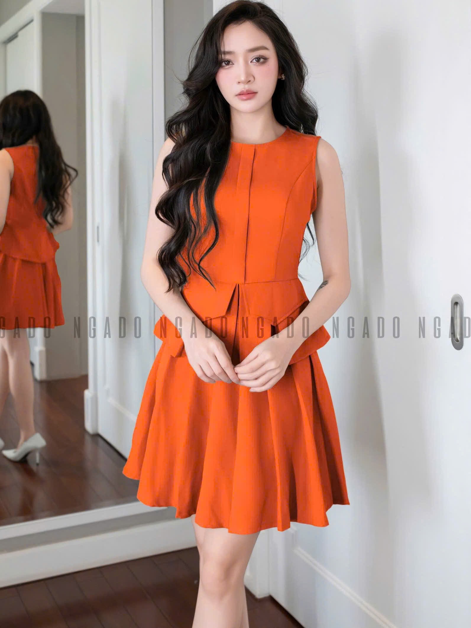 ღ THÔNG TIN SẢN PHẨM: Tên sản phẩm: Set áo váy cam xếp ly Thông số size: S, M, L, XL Chất liệu: gân ý Chi tiết sản phẩm: không lót,