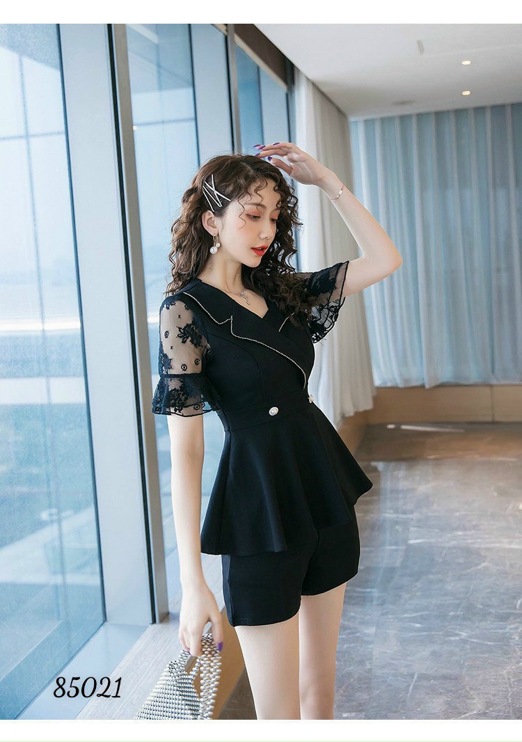 ✨Sét bộ đồ đùi nữ áo kiểu peplum cổ cách điệu phối ren đồ bộ dạo phố đồ mặc nhà siêu xinh đủ size từ 40-70kg