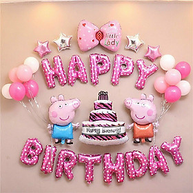SET 3+4: Bộ Trang Trí Sinh Nhật Heo Peppa Bộ sản phẩm bao gồm: 2 heo peppa + 1 bánh kem + 4 sao nhỏ + 1 nơ lớn + Chữ happy birthday + 10 bong bóng + 1 bơm tay bằng nhựa. Màu sắc: Hồng, Xanh