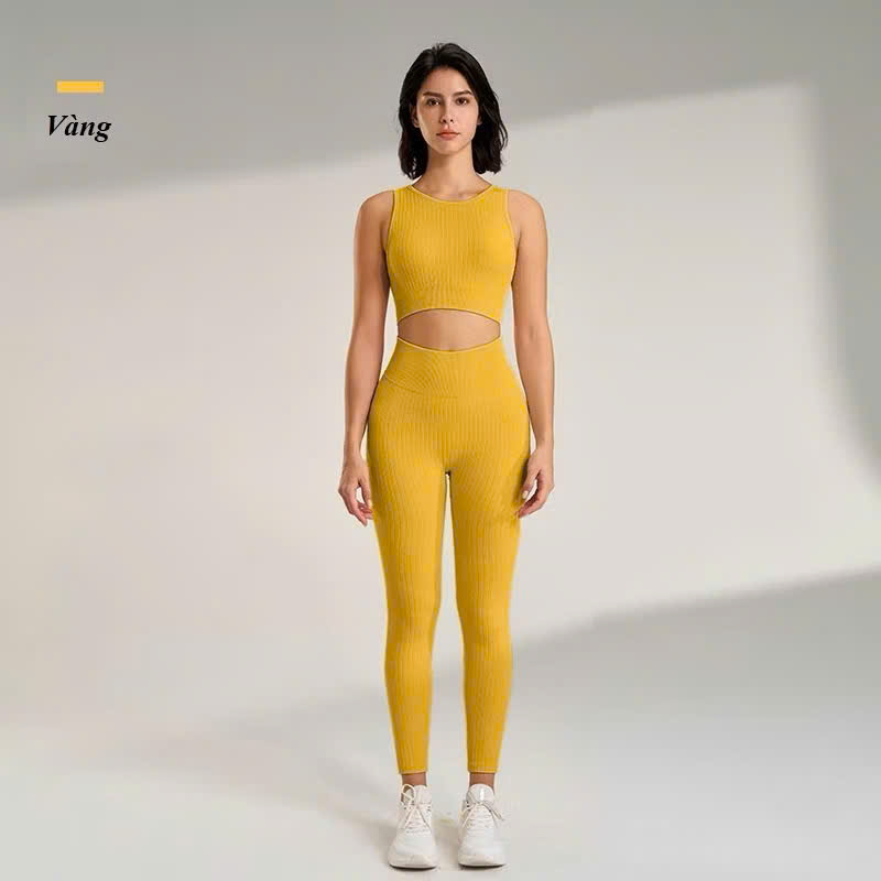 Chất liệu : thun dệt gân dày dặn, co giãn 4 chiều , thoáng khí , thấm mồ hôi tốt Kiểu dáng : quần ngắn cạp cao , áo 2 dây , phần mông có