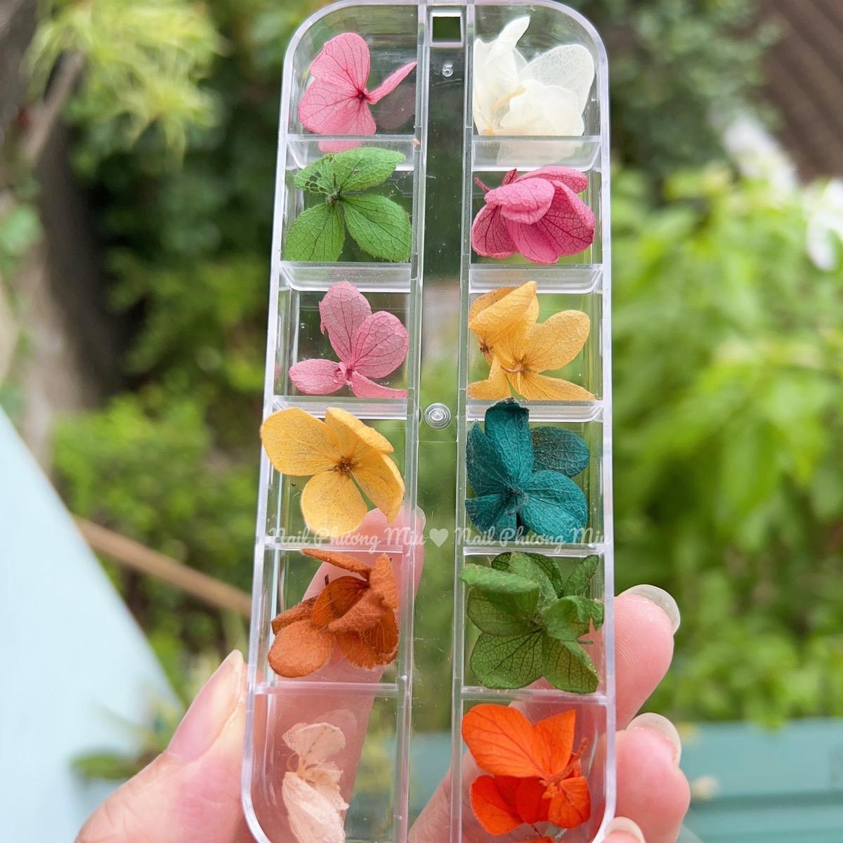 - Chùm Hoa Siêu Nhiều: Mỗi set hoa khô chứa nhiều bông hoa, bạn có thể cắt nhỏ bông hoa ra để kết hợp cùng giấy bạc, tạo nên hiệu ứng lấp lánh và đẹp mắt trên móng tay.