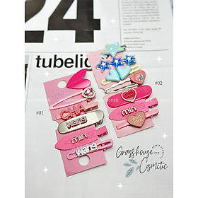 ✨Set kẹp tóc mái Handmade dễ thương 6pcs/vỉ chữ Min/ CHA/ Wang/ Hình Trái TIm