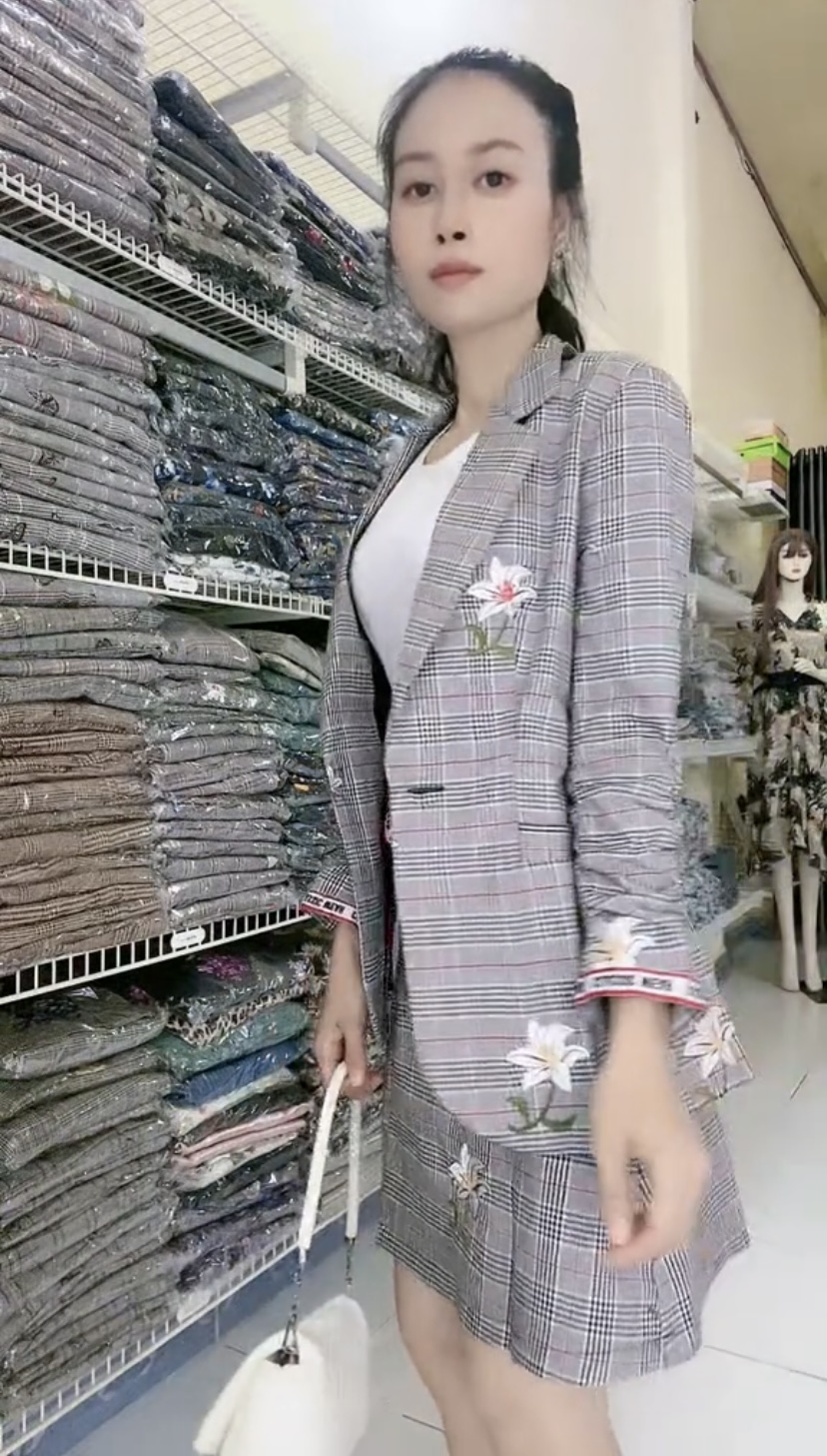 Set đồ công sở áo vest và chân váy, chất cát trượt đẹp