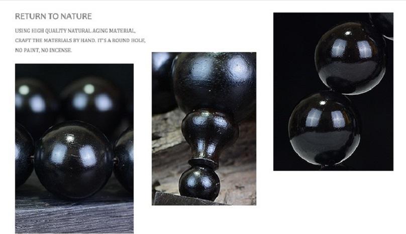 Vòng tay Tràng hạt gỗ Mun sừng cao cấp được chế tác từ những khối gỗ Mun đã trải qua hàng trăm năm sinh trưởng, được các nghệ nhân tạo tác một cách tỷ mỷ và trau chuốt kỹ lưỡng đạt đến sự hoàn mỹ nhất có thể.