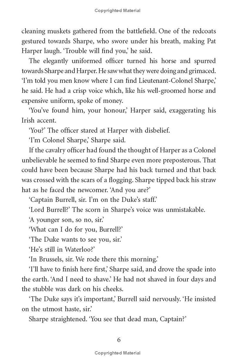 So when, the dust still settling after the Battle of Waterloo, the Duke of Wellington needs a favour, he turns to Sharpe. For Wellington knows that the end of one war is only the beginning of another. Napoleon's army may be defeated, but another enemy lies waiting in the shadows - a secretive group of fanatical revolutionaries hell-bent on revenge.