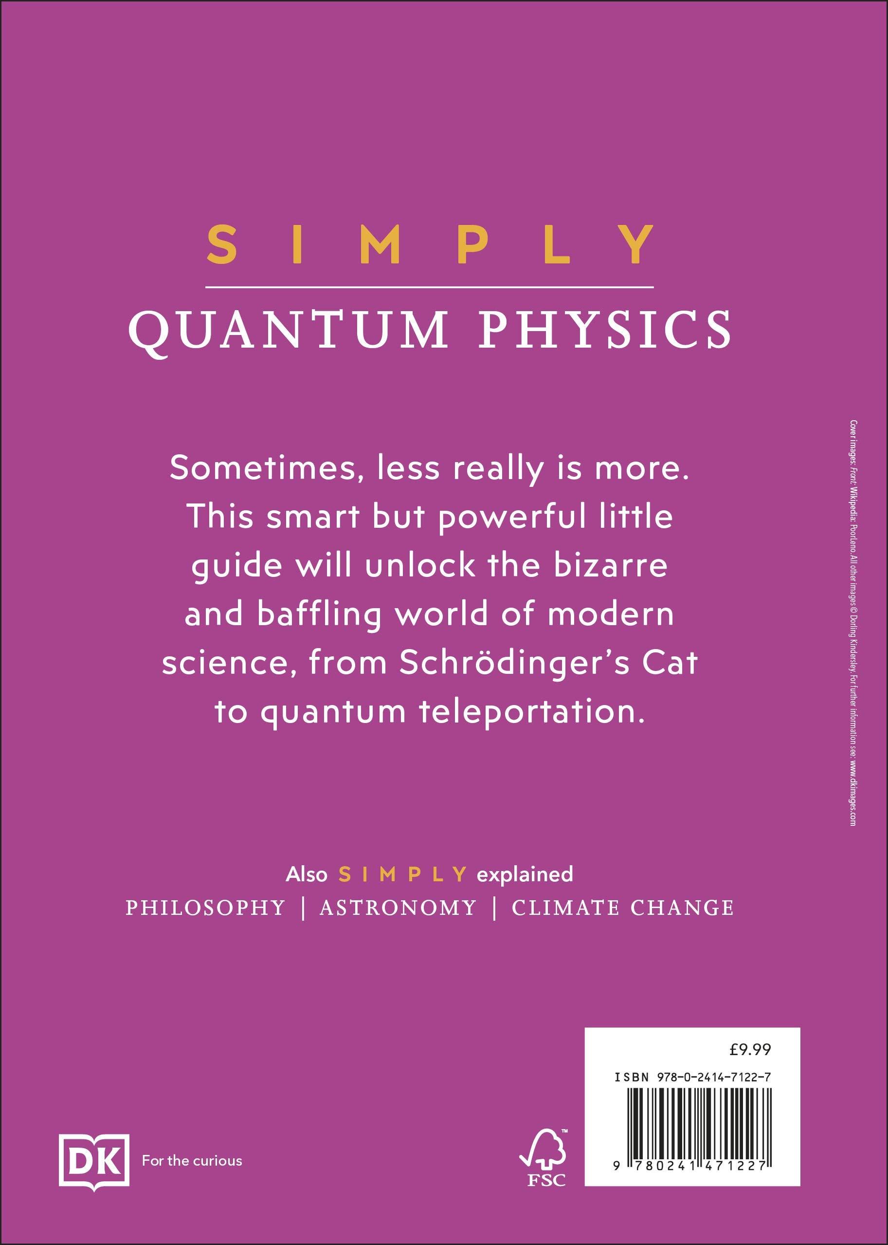 - Introduction to theoretical ideas and their everyday applications This smart but powerful guide cuts through the jargon and gives you the facts in a clear, visual way. Step inside the strange and fascinating world of subatomic physics that at times seems to conflict with common sense. Unlock the mysteries of more than 100 key ideas, from quantum mechanics basics to the uncertainty principle and quantum tunnelling. Each pared-back, single-page entry demystifies the groundbreaking ideas in modern science. From Schrödinger's Cat and quantum teleportation to atoms and gravity, Simply Quantum Physics is the ultimate jargon-free overview of the subject. Whether you're a physics student or just an interested layman, this indispensable guide is packed with everything you need to quickly and easily understand the basics. Complete the Series: Part of DK Book's exciting, brand-new reference series for those who are time-poor, but keen to learn more. Discover the mysteries of more key philosophical ideas in Simply Philosophy.