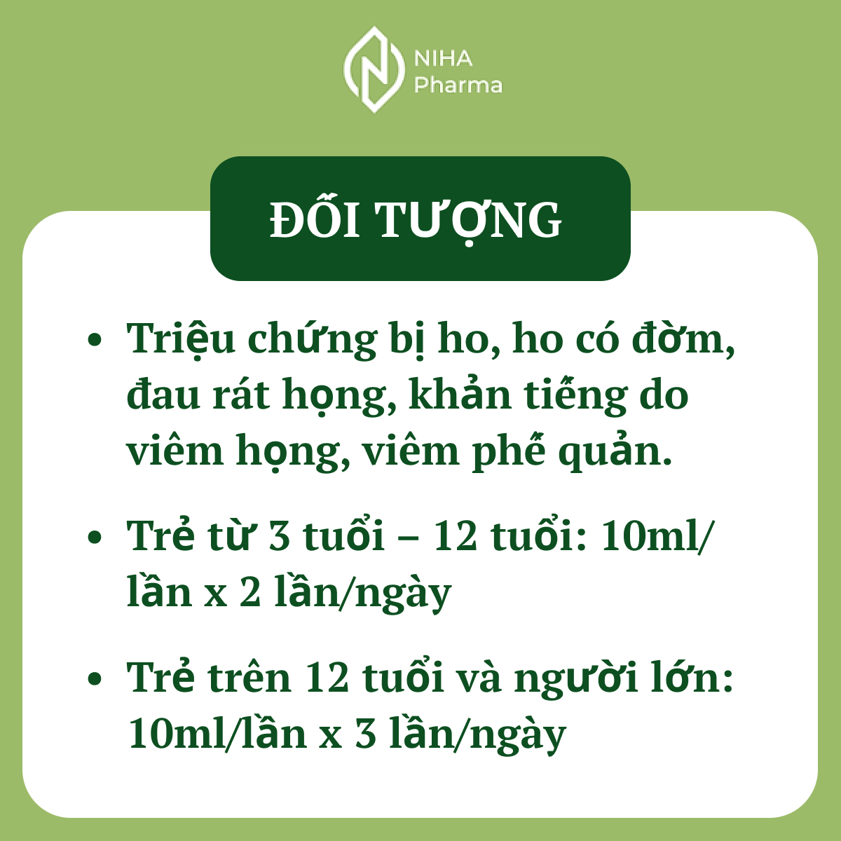 Trẻ trên 3 tuổi và người bị ho, ho có đờm, đau rát họng, khản tiếng do viêm họng, viêm phế quản.