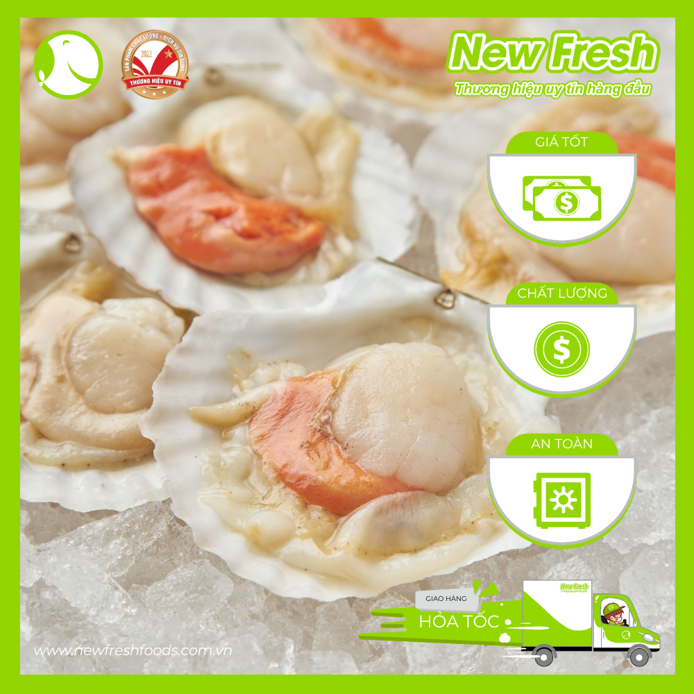 Với sản phẩm tươi sống, trọng lượng thực tế có thể chênh lệch khoảng 10%. Tên sản phẩm: Sò điệp Nhật nửa mảnh Xuất xứ: Japan Quy cách đóng gói: 1/kg Bảo quản: Đông lạnh