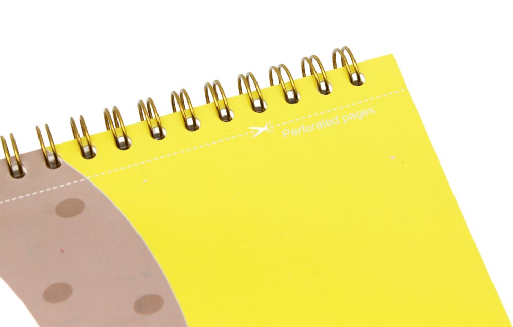 Sản phẩm được thiết kế gáy lò xo độc đáo, có thể gập lại mà không để lại nếp gấp, đồng thời có thể xé rời các trang bên trong khi cần rất tiện lợi.