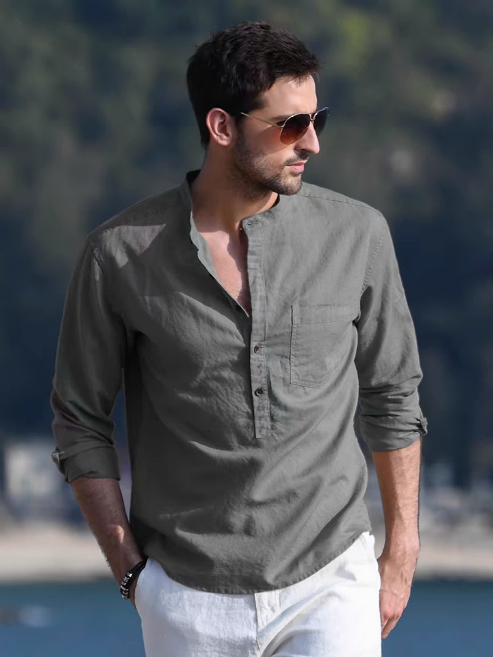 ✨ Sơ mi nam dáng đẹp basic trơn cổ điển, áo sơ mi cổ tàu công sở