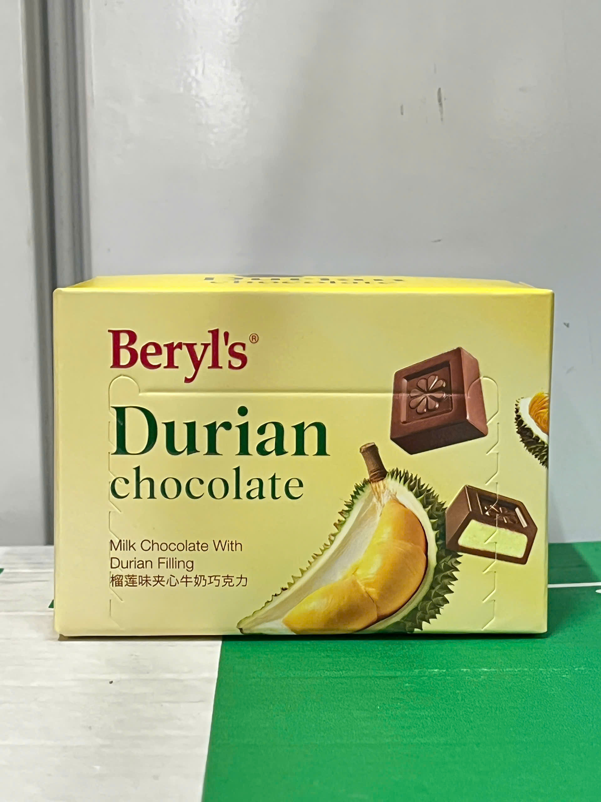 Socola sầu riêng Beryl's 60g -Beryl's Durian With Milk Chocolate Xuất xứ: Malaysia Thành phần : Sugar, Full Cream Milk Powder, Cocoa Mass, Cocoa Butter, Vegetable Fat (Palm Oil, Sunflower Oil), Skim Milk Powder, Whey