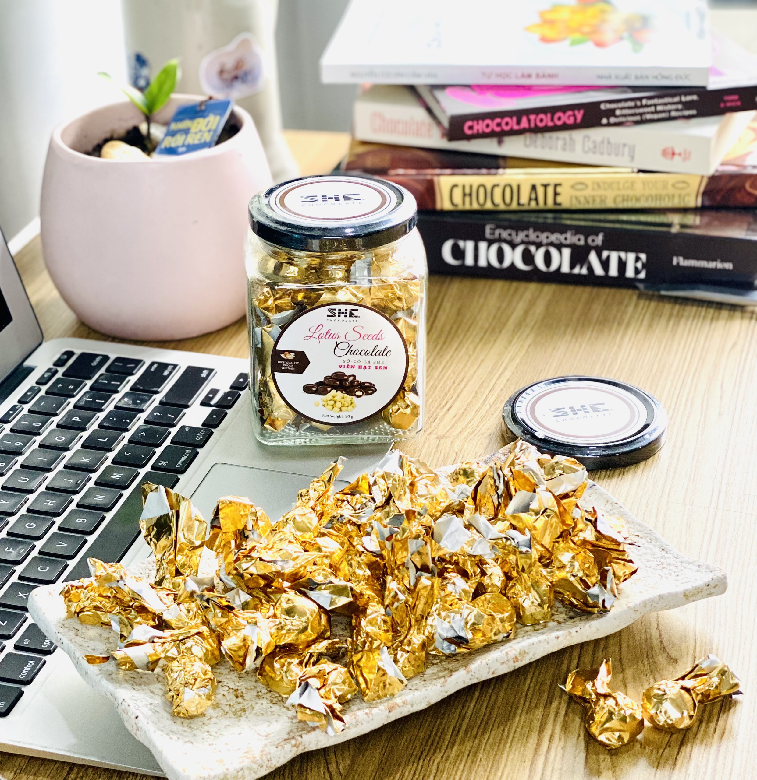 ✨Socola viên Hạt sen - Hũ thủy tinh 90G - SHE Chocolate - Bổ sung năng lượng, đa dạng vị giác. Quà tặng sức khỏe, quà tặng người thân, dịp lễ, thích hợp ăn vặt