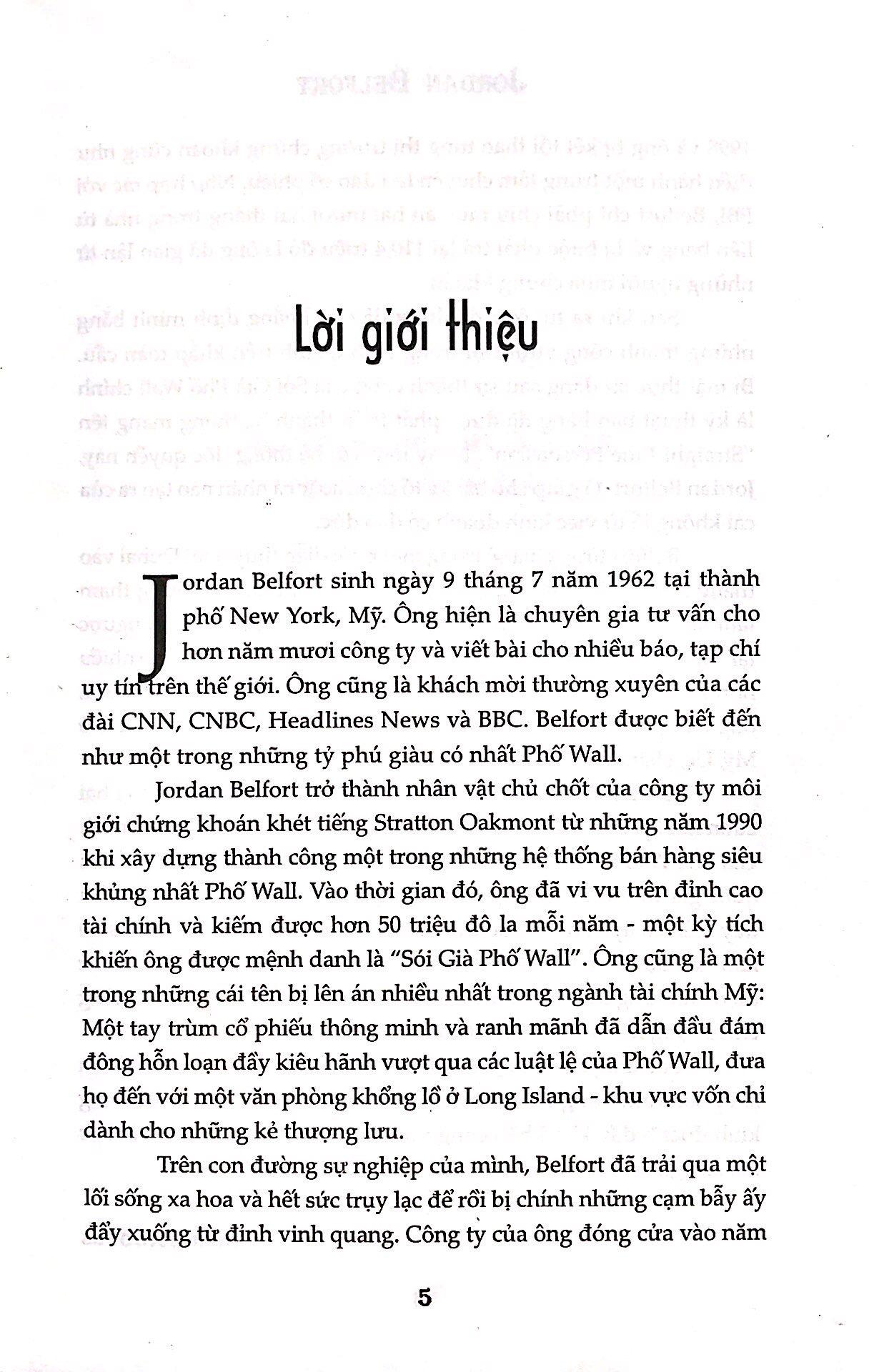 Chính nơi làm việc vô danh tiểu tốt này đã nhanh chóng trở thành “vườn ươm” cho tài năng bán hàng và môi giới của anh chàng Jordan Belford hiếu thắng, nhanh nhẹn, nhiều mưu lược. Cũng từ đây, gã trùm tài chính tương lai dần thọc tay vào nhiều ngõ ngách của thế giới phù hoa, hào nhoáng, gia nhập đội ngũ “buôn tiền” khét tiếng, từng bước khuynh đảo thị tường chứng khoán phố Wall.Sớm trở nên giàu có sau những vụ IPO nổi đình đám, nâng giá cổ phiếu từ “rác” trở thành “vàng”, đại gia Jordan Belford đã vượt mặt những tay trùm từng một thời vênh váo, biết chống chịu với những cơn stress trong cái nghề đầy áp lực. Với rất nhiều mánh lới trong kinh doanh, Sói Già đã trở thành triệu phú thị trường chứng khoán ở tuổi hai mươi sáu, bị kết án ở cấp liên bang năm ba mươi sáu tuổi. Anh ta tiệc tùng như một ngôi sao nhạc rock, sống như một ông hoàng và bước qua mọi thăng trầm của đời m.ình như một biểu tượng của các doanh nhân nước Mỹ. Từ một cậu bé bán kem dạo trong những kỳ nghỉ hè ở Italia, Jordan trở thành người có thể kiếm hàng triệu đô trong phút chốc bằng những mánh lới xoay đủ chiều, có khi còn lợi dụng cả những người thân bên m.ình. Anh ta cũng sớm học được cách nốc rượu thay nước lọc, chơi cocain, bao gái, và tiệc tùng lõa thể thâu đêm suốt sáng. Là con “sói già” vô cùng tỉnh táo trên thương trường, nhưng trong đời riêng, không ít lần hắn rơi vào cảm giác vô thức. Trong cuộc đời Jordan Belford, dẫu từng có bao gái đẹp vây quanh, nhưng kết cục vẫn là “từng người tình đã bỏ ta đi”.
