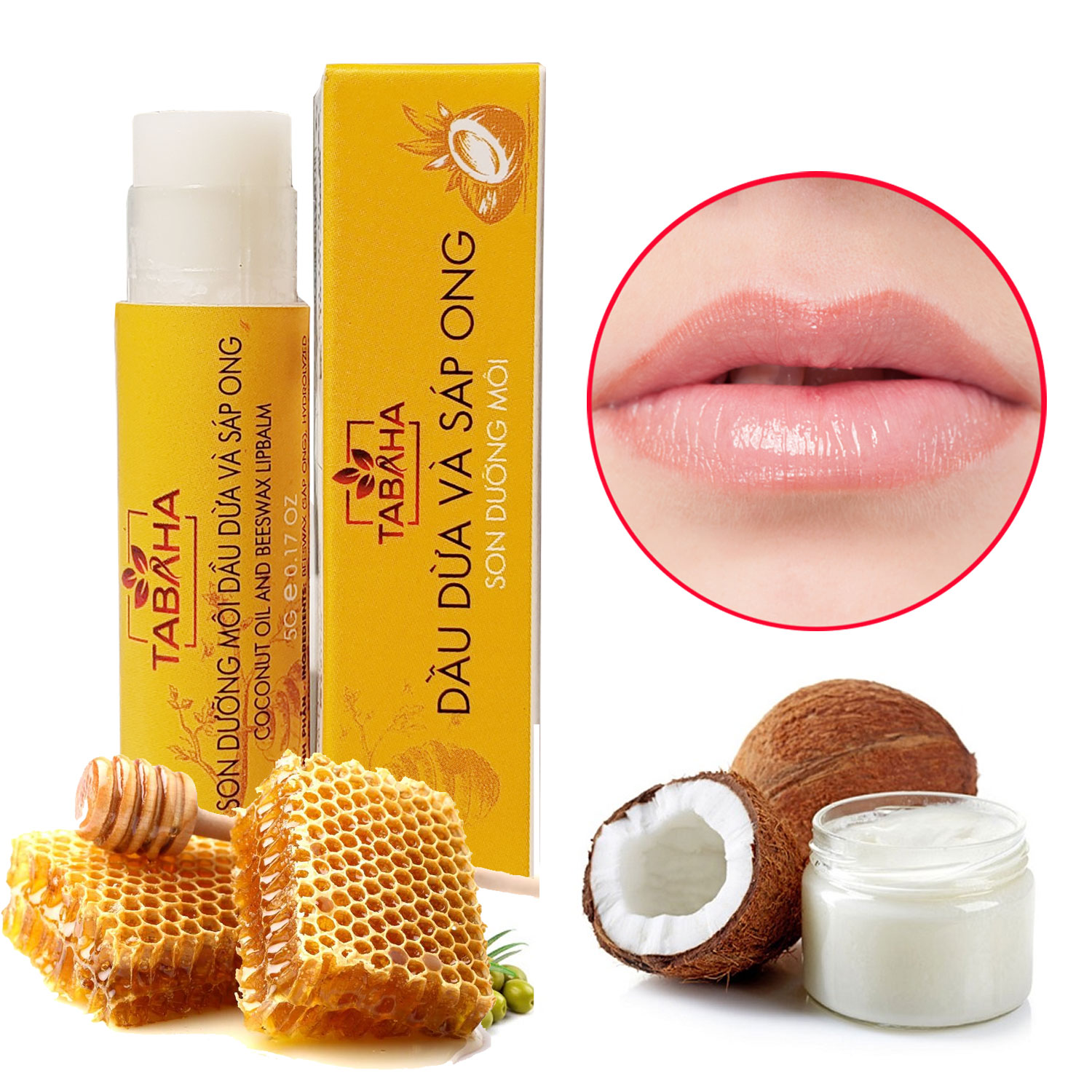 ✨Son Dưỡng Môi Dầu Dừa Và Sáp Ong TABAHA 5g Giảm Thâm Hết Khô Nứt Nẻ