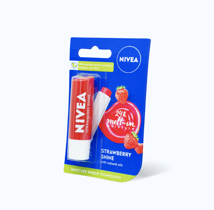 ✨Son Dưỡng Môi NIVEA Strawberry Shine Hương Dâu - Màu đỏ (Thỏi 4.8g)