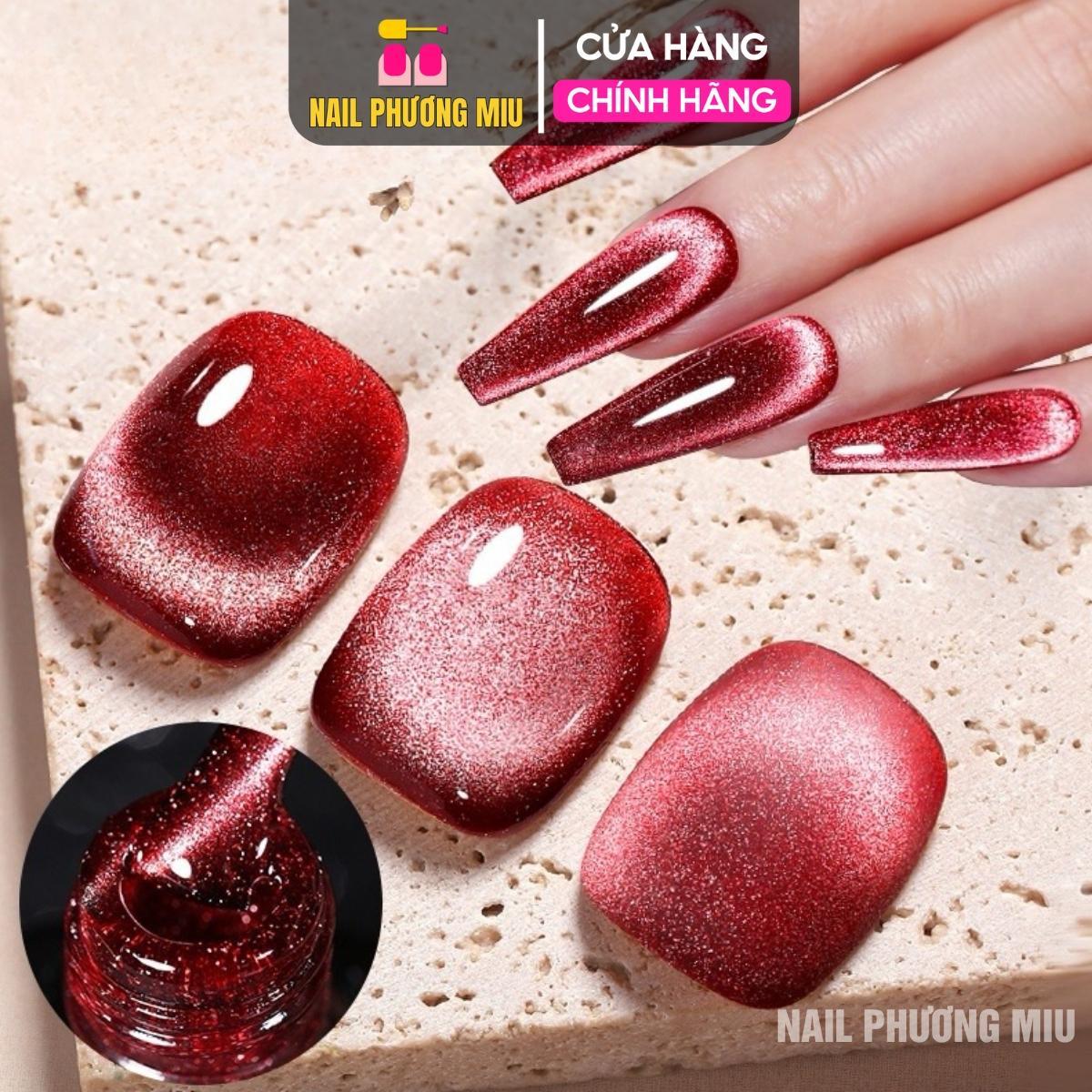 Mắt mèo đỏ, gel nhũ bạch kim siêu sáng , cọ vẽ gel, nam châm hút mắt mèo e sẵn #nailmi #nailart